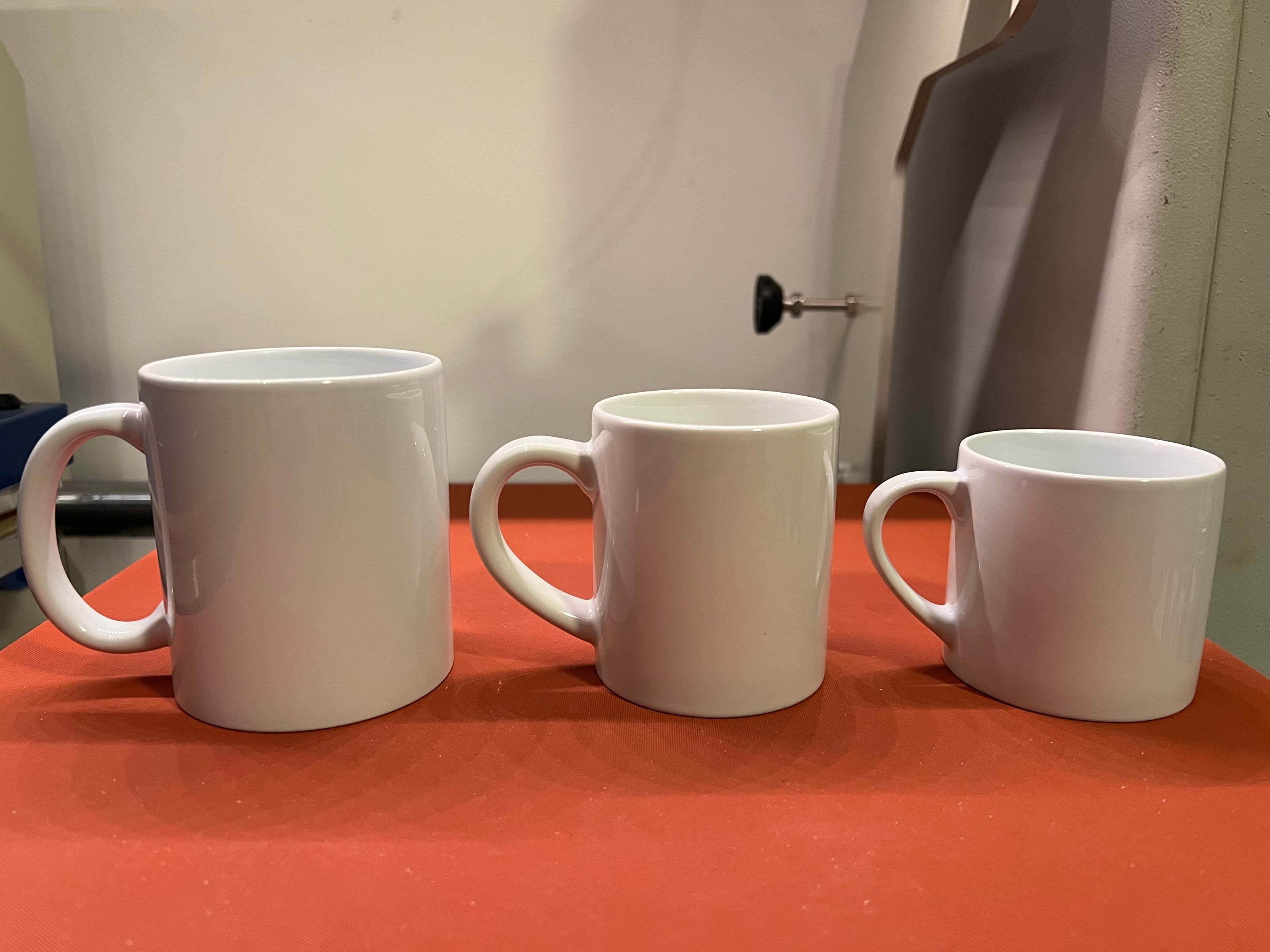 Stort krus rommer 3,3 dl, medium 2,5 dl og liten 1,8 dl.